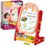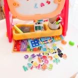Minden benne van, amire a gyerekeknek szükségük lehet: mágneses ábécé és számok, filcek, kréták, szivacs, praktikus polc és pohár a kellékeknek, valamint két társasjáték közös szórakozáshoz. A kompakt méretek megkönnyítik az elhelyezést a gyerekszobában.