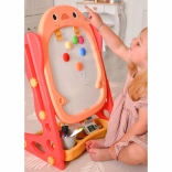 A WOOPIE kétoldalas tábla játékos formában támogatja a kreativitást, a finommotorikát és a betűk és számok tanulását. Az egyik oldal fehér mágneses tábla szárazon törölhető filchez, a másik krétás felület. A magasságállításnak köszönhetően könnyen a gyermek növekedéséhez igazítható.