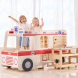 A gyerekek vezetnek, ellátnak és diszpécselnek – mindezt egy masszív fa járműben, rengeteg interaktív elemmel, amelyek magukkal ragadják őket a játékba.