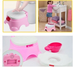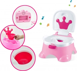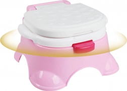 A WOOPIE 3 az 1-ben zenélő gyerek bili felgyorsítja a gyermek önálló szobatisztaságra szoktatását! A bili ideális a kicsiknek a széles, ergonomikus ülésnek, az oldalsó fogantyúknak és a stabil alapnak köszönhetően. A beépített dallamoknak hála, amelyeket bármikor el lehet indítani vagy megállítani, a bilizés szórakoztató élménnyé válik a gyermek számára. A bili úgy lett megtervezve, hogy megkönnyítse a szülők életét; az ürítése csupán néhány pillanatig tart. Összeállítva a bili székként vagy fellépőként is használható a mosdónál. A legmagasabb minőségű és biztonságos anyagokból készült.