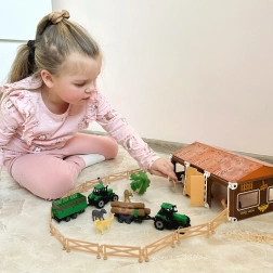 A gyerekek fejlesztik finommotorikájukat, szókincsüket és fantáziájukat. A figurákkal és járművekkel való játék mesemondásra és a farmélet megismerésére ösztönöz.