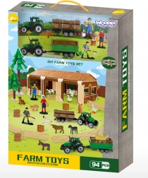 - 94 darab órákon át tartó szórakozáshoz: állatok, emberek, traktorok, pótkocsik, pajta, karámok és kiegészítők.
