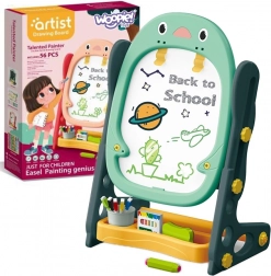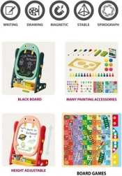 A WOOPIE kétoldalas mágneses táblája sokoldalú játék, amely támogatja a gyerekek fejlődését, és játékos formában tanítja a számokat és betűket. 3 éves kortól ajánlott, és 56 elemet tartalmaz, amelyek változatos felhasználási lehetőségeket kínálnak.