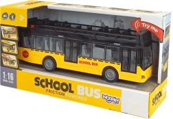 Ez a busz 3 éves kortól ajánlott, 1:16 méretarányban készült, és súrlódásos meghajtással rendelkezik, amely egyszerű előrehaladást tesz lehetővé. A játék valósághű fény- és hangeffekteket kínál, amelyek gombokkal aktiválhatók. A jármű belsejében kék fény villog, ami tovább fokozza a gyerekek szórakozását.