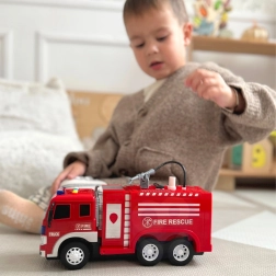 A játék valósághű tűzoltóautót imitál hang-, fény- és vízeffektusaival.