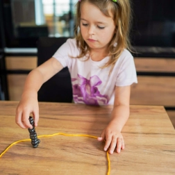 Rugalmas zsinór, amellyel bárhol gyorsan „pálya” alakítható ki. Ennek köszönhetően a játék áttekinthető az asztalon és utazás közben is.