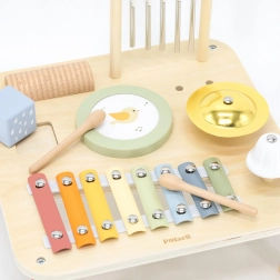 Az asztal különféle eszközöket tartalmaz, amelyek segítenek fejleszteni gyermeke zenei hallását és ritmusérzékét.