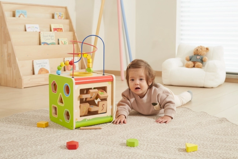 A különböző geometriai elemekhez illő nyílások segítenek a formák és színek felismerésében, valamint fejlesztik a térbeli tájékozódást.