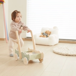 A fából készült szerkezet erős támogatást nyújt kicsi gyermekek lábainak, lehetővé téve számukra a biztonságos járás tanulását.
