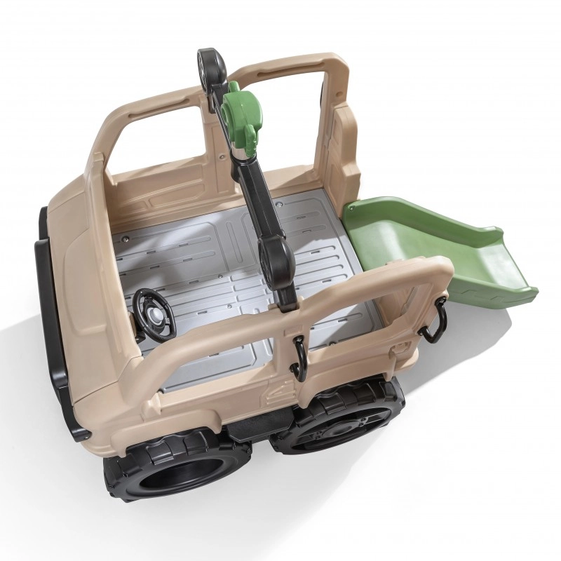 A Step2 szafari kamion valósághű terepjáró élményt nyújt a gyerekeknek, részletes dizájnjának, nagy kerekeinek és nyitott tetejének köszönhetően. Masszív szerkezetének köszönhetően ideális kültéri játékra. A gyerekek kalandorként játszhatnak, felmászhatnak a nagy kerekeken a platformra, ahol távcső található a „vadállatok” megfigyelésére. Ez a játszószett kiváló minőségű műanyagból készült, ami biztosítja a biztonságot és a tartósságot.