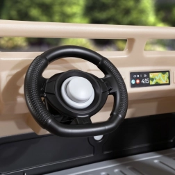 Valósághű terepjáró dizájn nagy kerekekkel és nyitott tetővel, amely támogatja a gyerekek képzelőerejét és kreatív játékát.