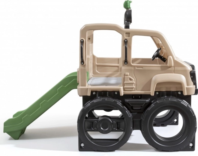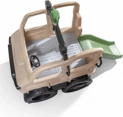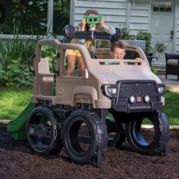 A Step2 szafari kamion valósághű terepjáró élményt nyújt a gyerekeknek, részletes dizájnjának, nagy kerekeinek és nyitott tetejének köszönhetően. Masszív szerkezetének köszönhetően ideális kültéri játékra. A gyerekek kalandorként játszhatnak, felmászhatnak a nagy kerekeken a platformra, ahol távcső található a „vadállatok” megfigyelésére. Ez a játszószett kiváló minőségű műanyagból készült, ami biztosítja a biztonságot és a tartósságot.