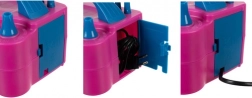Kettős fúvókával van felszerelve, mely lehetővé teszi, hogy egyszerre két lufit fújjon fel, ezáltal jelentős időt és energiát takarít meg az előkészületek során. A praktikus kábel tárolóhely és a hordozható design a fogantyúnak köszönhetően a pumpa ideális társa minden rendezvényszervezőnek.