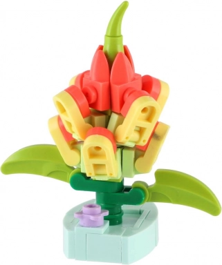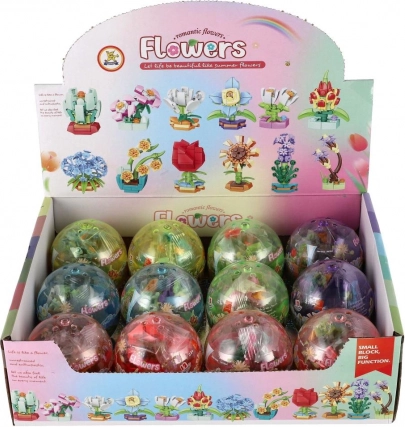 Ez a bájos mini építőkészlet minden kapszulát színekben gazdag meglepetéssé varázsol. Minden virág több elemből áll, amelyek pontosan illeszkednek egymáshoz, összeállítás után pedig egy kb. 6 cm-es dekoratív modell jön létre. A különféle virágtípusoknak köszönhetően a gyerekek saját kis „virágoskertet” építhetnek.