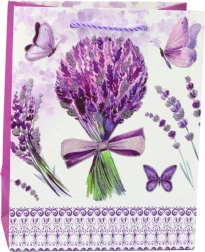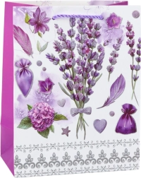 Bemutatjuk a papírtáskát varázslatos levendula mintával és finom csillogó elemekkel. Ez a romantikus design, amelyet a levendula mezők szépsége inspirált, ideális csomagolást nyújt különféle alkalmakra, például születésnapokra, évfordulókra vagy baráti összejövetelekre.