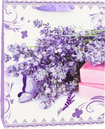Elegáns levendula motívum pillangókkal és virágmintákkal kombinálva, ami különleges stílust ad az ajándékoknak.