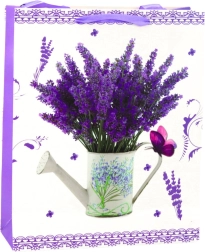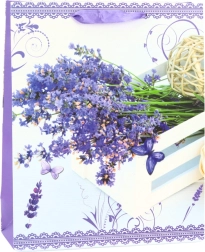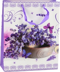 Varázslatos ajándékzacskó levendula motívummal, amely eleganciát és stílust ad ajándékainak. Minden alkalomra tervezve – születésnaptól az Anyák napjáig – és benyomást kelt finom és harmonikus kialakításával.