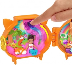 Fedezd fel a zsebszintű szórakozás világát a Polly Pocket hordozható szettjével! A cuki, állatformájú kompakt doboz egy fantáziával teli minivilágra nyílik, benne egy babával, 2 állatfigurával (egyik puha bundával) és egy fésűvel, amely a felső részben van elrejtve. A hátizsákra csíptethető klipnek, valamint a szettek összekapcsolási és egymásra helyezési lehetőségének köszönhetően a gyerekek otthon és útközben is kreatívan játszhatnak.