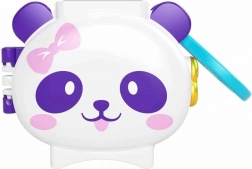 A kinyitható, panda alakú Polly Pocket Pet Connects kompakt készlet kreatív és utazáshoz ideális játékra született. Kinyitva egy panda témájú minijelenet vár, két figurával (köztük egy puha szőrűvel) és egy praktikus fésűvel, amely a készlet felső részében kapott helyet.