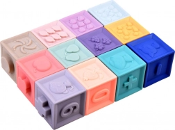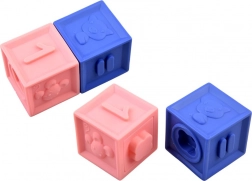 Megnyomáskor a kockák finoman sipognak, ami felkelti a kíváncsiságot és fejleszti a hallási észlelést. A puha szilikon biztonságos a kis kezeknek és az első fogacskáknak.