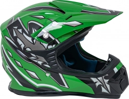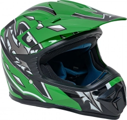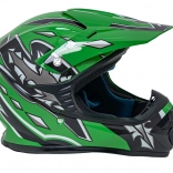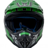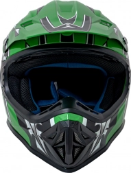 Ez a zöld motocross és enduró sisak az alacsony tömeget és a magas szintű biztonságot ötvözi a tartós ABS héjnak köszönhetően. Az innovatív szellőzőrendszer szárazon és kényelemben tartja a fejet még megterhelő terepezés közben is, míg az állítható napellenző véd a naptól és a felverődő szennyeződésektől.