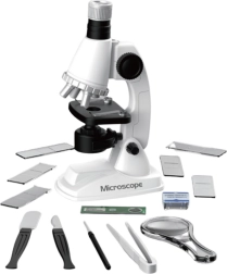 A mikroszkóp kompakt, így könnyen elfér a hátizsákban, fiókban vagy asztalon. 5 AA elemmel működik (nem tartozék), ami lehetővé teszi a használatot elektromos csatlakozó nélkül – ideális otthoni használatra és utazáskor. A készlethez számos tartozék tartozik, mint például tárgylemezek, pipetta, csipesz, nagyító vagy laboratóriumi edények, melyek lehetővé teszik a minták elkészítését és vizsgálatát – mint egy valódi laboratóriumban.