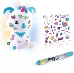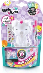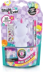 Ragyogtassa be a szobát egy eredeti dekorációval: a STYLE4EVER mini deco világító figura finom, hangulatvilágítást ad 8 színben, és teret enged a kreatív díszítésnek. A csomagban matricákat és filctollat talál, 6 motívum közül választhat (2 egyszarvú, koala, kutya, macska). Az elemek mellékelve vannak, és a játék 6 éves kortól ajánlott.
