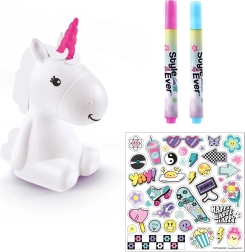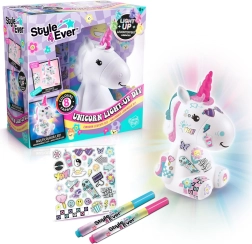 Vigyél varázslatot a gyerekszobába a Style4Ever világító unikornis kreatív készlettel, amelyet a gyerekek maguk díszíthetnek. Az unikornis elkészítés után 8 színben ragyog, és meghitt hangulatot teremt. A csomagban világító figura, 4 filctoll, matricák és könnyen követhető útmutató található, az elemek a csomag részét képezik. 6 éves kortól.