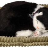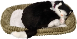 Ez a valósághű, fekete-fehér plüsscica békésen szundikál a saját fekhelyén, és finoman „lélegzik”, így meghitt hangulatot és egy igazi kedvenc jelenlétének érzetét kelti. Részletgazdag kidolgozásának, bilétás nyakörvének és puha bundájának köszönhetően remek ajándék 3 éves kortól a macskakedvelőknek.