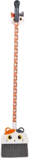Aranyos szett kis házi segítőknek: gyerek seprű és lapát cica motívummal, narancssárga színben. Könnyű, tartós és biztonságos 3 éves kortól, támogatja a önállóságot és a felelősségtudatot a takarítás során. Ideális a apró szennyeződések összegyűjtésére a gyerekszobában és a konyhában is.