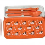 Praktikus és aranyos, narancssárga ebédsdoboz cicamotívummal – ideális munkába, iskolába és utazáshoz. A készlet része az integrált evőeszköz – kanál és villa. Egész napra elegendő adagot befogad, fagyasztóba tehető, és mikrohullámú sütőben fedél nélkül melegíthető (max. 100 °C). Kompakt méretei 20 × 10,6 × 10 cm megkönnyítik a táskában vagy hátizsákban való hordozást.