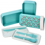 A csomag tartalmaz egy többször használható műanyag evőeszközkészletet, amelynek helye közvetlenül a dobozban van – így minden szükséges mindig kéznél lesz. A doboz fagyasztóba tehető, és az étel kényelmesen melegíthető mikrohullámú sütőben fedél nélkül egészen 100 °C-ig. Első használat előtt a terméket alaposan mossa el.