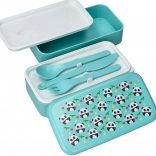 A készlet része egy műanyag kanál, villa és recés kés, amelyek közvetlenül a fedélben kapnak helyet. Soha többé kapkodás az evőeszközök után az utolsó pillanatban.