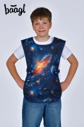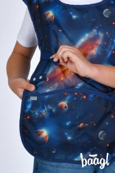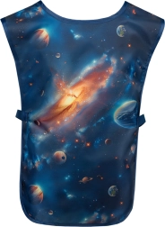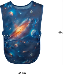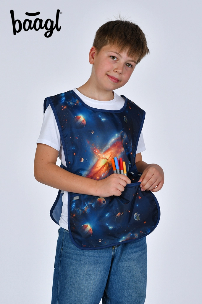 Ez a stílusos gyerek kötény űrmintával ideális az iskolai rajzórára, az otthoni alkotáshoz és más kreatív tevékenységekhez. A tartós, könnyen tisztítható felület egyszerűen letörölhető, így a ruha tiszta és biztonságban marad.