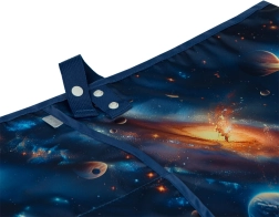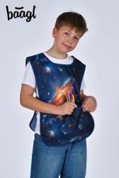 A praktikus kettős zsebek az alsó részen ecseteknek, ceruzáknak és apró eszközöknek adnak helyet. A kényelmes oldalsó rögzítésnek köszönhetően a kötény jól illeszkedik és nem korlátozza a mozgást. A modern űr dizájn szórakoztatja a gyerekeket és motiválja őket az alkotásra.