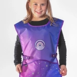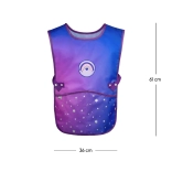 A praktikus két alsó zseb elfér benne ecset, ceruza vagy zsebkendő, míg a állítható pántok tépőzárral kényelmes és gyors felvételt biztosítanak különböző korú gyerekeknek.