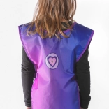 Ez a színes gyerek kötény kék és lila átmenettel, aranyos szívecskével ideális rajzórára, szakkörökre és otthoni alkotáshoz. A strapabíró, mosható anyagnak köszönhetően könnyen karbantartható és hosszú élettartamú.
