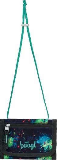 A BAAGL Chill nyakba akasztható, praktikus pénztárca gyerekeknek és tiniknek, amely elegendő helyet kínál aprópénznek, kártyának vagy ebédchipes azonosítónak és kulcsoknak. A állítható, biztosítékkal ellátott zsinórnak köszönhetően a viselése kényelmes és biztonságos. Tartós, újrahasznosított anyagból készült, tépőzáras záródással és külön aprópénztartó zsebbel.