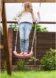 Stílusos és biztonságos gyerekhinta, ideális kertbe vagy otthonra. Úgy tervezték, hogy a profilozott ülésnek és az erős köteleknek köszönhetően stabilitást és kényelmet nyújtson.