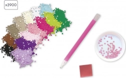 - Ragasztós vászon védőfóliával, kb. 1350 kő 14 színben, gumi, applikációs toll, útmutató brosúrában