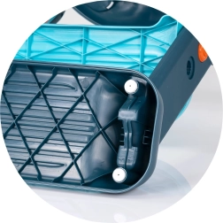 A széles csúszásgátló fellépő, a csúszásgátló lábak és a masszív kapaszkodók magabiztosságot adnak a gyermeknek minden lépésnél és ülésnél.