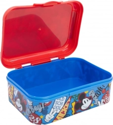 Elegáns műanyag uzsonnás doboz megfelelő méretben, hogy a gyerekek könnyedén magukkal vihessék a parkba, iskolába vagy kirándulásra, kedvenc Mickey Mouse mintával.