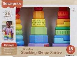 A FISHER-PRICE fa válogató torony három különálló toronyból áll különböző formákkal, amelyeket a gyerekek a masszív fa alap tüskéire fűznek. A színes elemeknek köszönhetően a gyerekek játékosan gyakorolják a válogatást, a rakosgatást és a logikus gondolkodást.