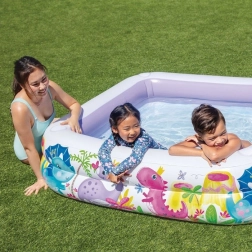 Az INTEX felfújható gyermekmedence színes dinoszaurusz mintával ideális a forró napokra. A levehető felfújható tetőnek köszönhetően a gyerekek árnyékban pancsolhatnak, a szülők pedig értékelni fogják a könnyű kezelhetőséget és a biztonságos kivitelezést. A 157 × 157 × 122 cm méret és a 295 l kapacitás elegendő helyet kínál felfrissüléshez és játékhoz.