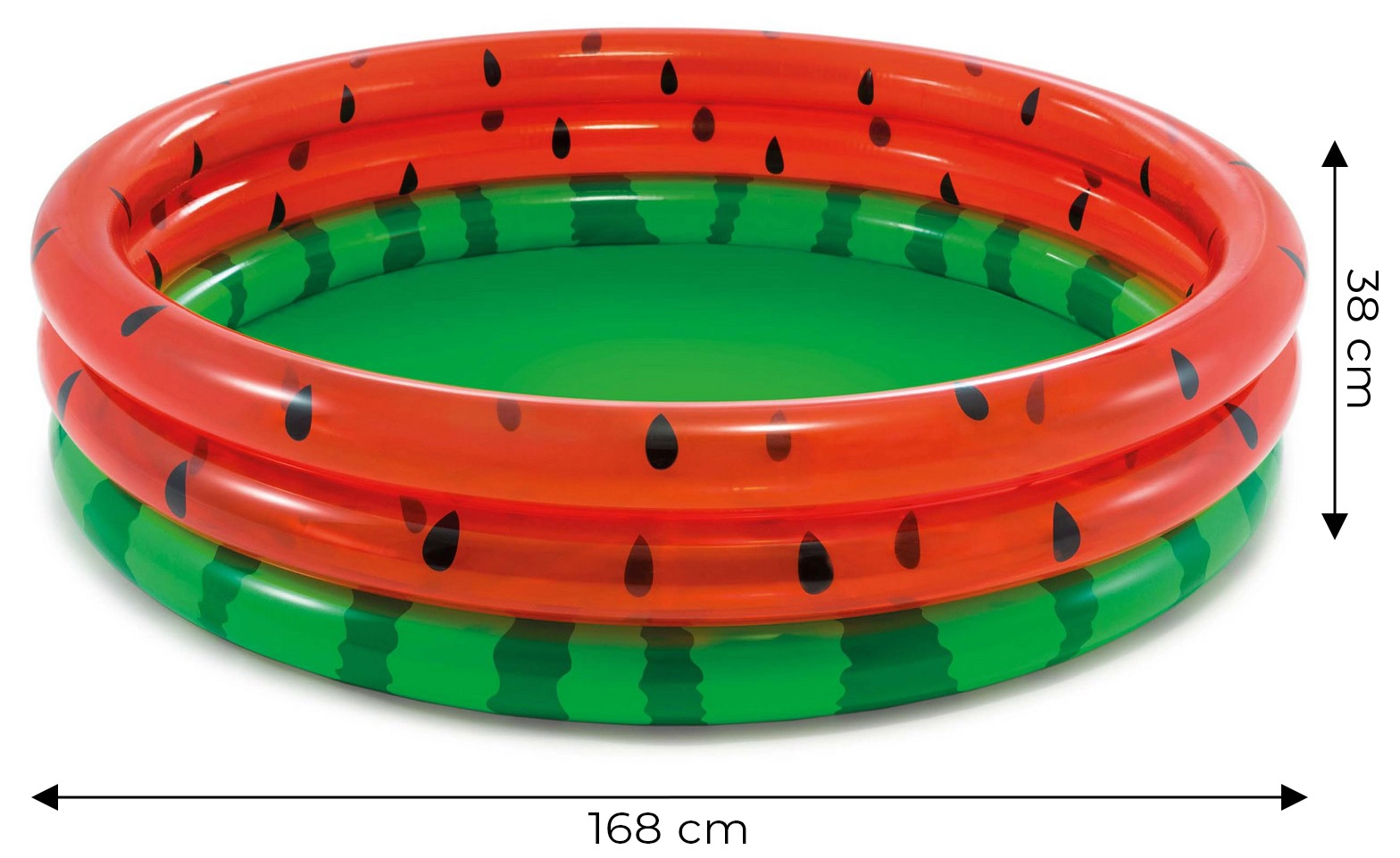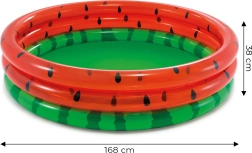 Stílusos, lédús görögdinnyére emlékeztető megjelenés, amely azonnal nyári hangulatot varázsol a kertjébe. A minőségi PVC-ből (0,23/0,18 mm) készült három felfújható gyűrűnek köszönhetően stabil, kényelmes és ellenáll a szokásos igénybevételnek. A 18 cm-es vízszint barátságos a kisebb gyerekeknek, és nagyobb biztonságérzetet ad a szülőknek.