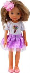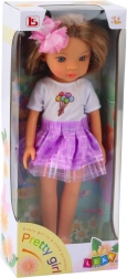 A Pretty Girl baba fehér, léggömb mintás pólót visel, amely tökéletesen illik a finom fényű lila tüllszoknyához. Az öltözéket rózsaszín cipők teszik teljessé, amelyeket divatos és vidám megjelenést kölcsönöznek. Levehető ruházata lehetővé teszi a baba átöltöztetését és új öltözetek kitalálását. Mozgatható karjai, lábai és feje miatt a baba könnyen kezelhető, leültethető, mozgatható és különféle jelenetek megjelenítésére alkalmas.