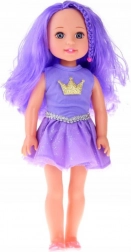 A baba lila ruhát visel csillogó koronával a mellkasán és finom ezüst szalaggal, ami királyi megjelenést kölcsönöz neki. Rózsaszín balerinacipők tökéletesen kiegészítik az öltözéket. Mozgatható karokkal és lábakkal a baba különböző helyzetekbe állítható, így a gyerekek saját történeteket alkothatnak. Tartós műanyagból készült, felkészülve a mindennapi, intenzív játékra.