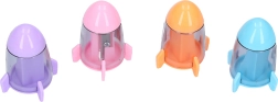 Praktikus iskolai ceruzahegyező egy ceruzához, beépített forgácstartállyal és űrhajó alakú integrált radírral. Ideális mindennapi használatra, elérhető 4 színben, 24 db-os tubusos kiszerelésben. Könnyű és tiszta hegyezés, kompakt kialakítás és szórakoztató motívum gyerekeknek.