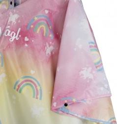 Élvezd a száraz és kényelmes kalandokat esőben is. A BAAGL gyerek esőponcsó egyszarvús motívummal vidám színeivel és funkcionális részleteivel hódít. A napellenzős kapucni megóvja az arcot a cseppektől, miközben a vízálló, könnyű anyag kellemes viselet és könnyen elcsomagolható.