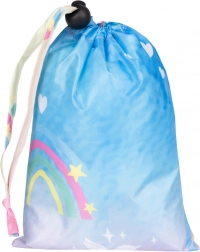 Átgondolt szabása lehetővé teszi, hogy a poncsót hátizsákra vagy iskolatáskára húzd, így a gyerek holmija szárazon marad. A fényvisszaverő elemek növelik a láthatóságot szürkületben és esőben, a praktikus összehúzható tasak pedig színben illeszkedik a poncsó motívumához – tökéletes utazáshoz, iskolába és szakkörökre.